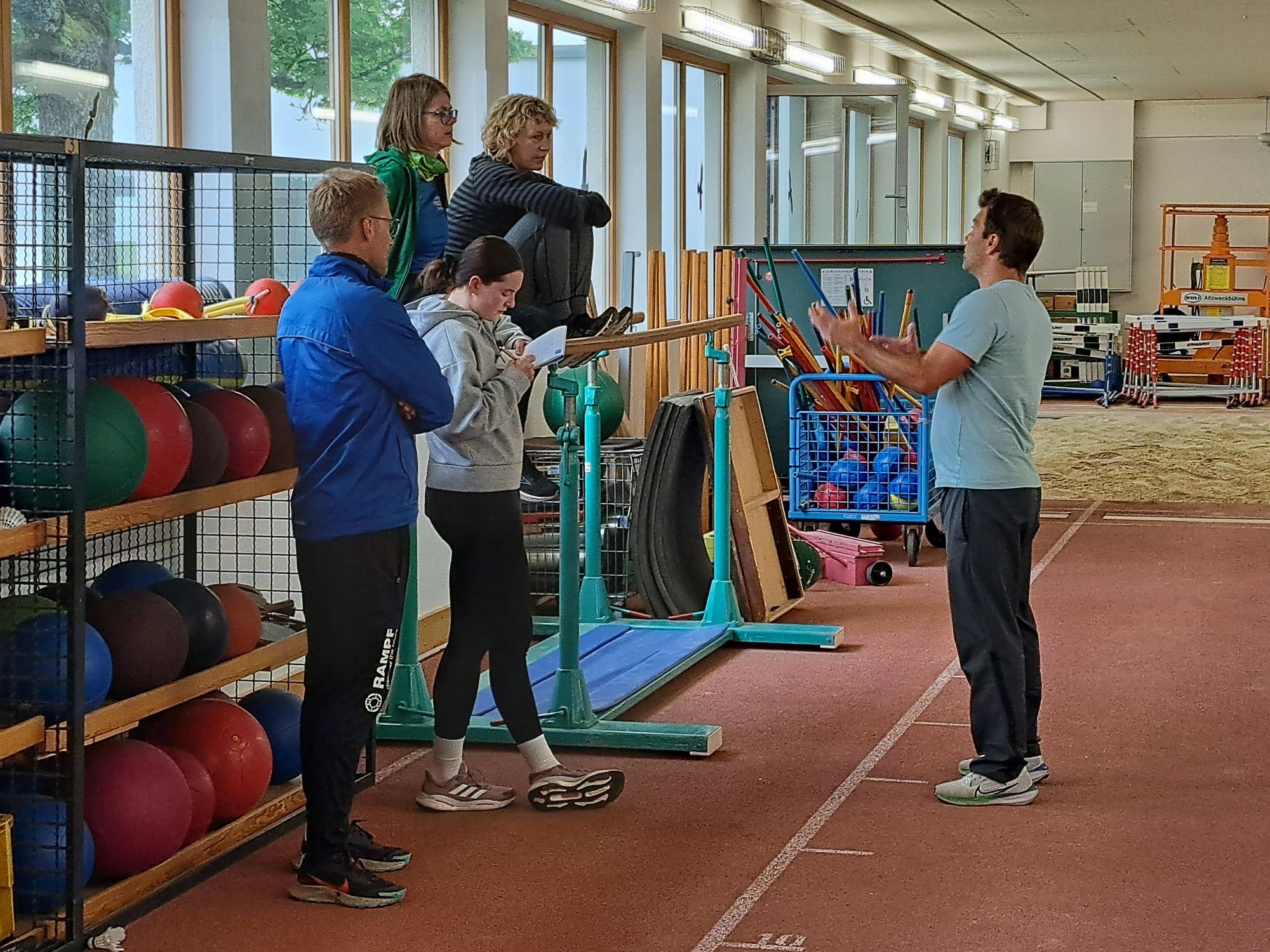 Die Verzahnung von Training und Ausbildung gelang den Landestrainern aber bestens. In Steinbach kümmerten sich Steffen Hertel, Jennifer Klein und Volker Zahn um die Springer:innen sowie Cathleen Tschirch und Sven Rees um die Sprinter:innen und hatten für die Trainer:innen viele Tipps zur Methodik, zur Belastungssteuerung und zum Coaching parat. In Albstadt versorgten Philipp Schneider, Regina und Christoph Geissler die Mehrkampfgruppe. Aber auch Landestrainer Florian Bauder ließ es sich kurz vor der Geburt seines Kindes nicht nehmen, zumindest für eine Einheit an die Landessportschule zu kommen und den B-Trainern wertvolle Tipps zu geben. Im Stabhhochsprung unterstützte Anjuli Knäsche Landestrainer Dr. Stephan Munz beim Techniktraining mit der großen Stab-Gruppe. Um den Wurfbereich kümmerten sich Markus Reichle, David Wrobel und Karsten Thumm und freuten sich über die Verstärkung durch den ehemaligen Landestrainer Lutz Klemm, der inzwischen als Landestrainer in Hessen tätig ist. Er füllte die Kooperation mit der Leichtathletik Baden-Württemberg mit Leben und brachte eigene Schützlinge mit und übernahm auch Teile des Trainings und der Ausbildung.