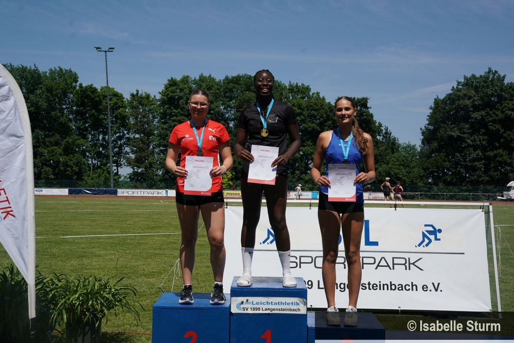 Das Podest im Diskus ging geschlossen an den TSV Frickenhausen und Familie Pindonis. Mit 53,74 Metern gewann Konstantinos vor Christos (47,87 m) und Pavlos (37,30 m). Laura Berger (VfL Sindelfingen) ist neue Baden-Württembergische Meisterin im Diskuswurf. Mit 39,68 Metern setzte sie sich gegen Hannah Runge (37,51 m, TV Haslach) und Lisa Engel (34,86 m, LG Limes-Rems) durch.